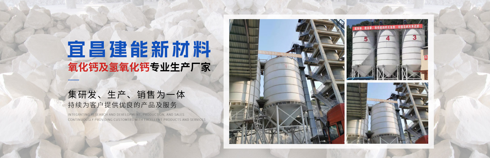 宜昌建能新材料有限公司 地址位于湖北省宜都市姚家店鎮(zhèn)油榨坪村二組,交通便利。我們公司是一家專(zhuān)業(yè)從事石灰研發(fā)、生產(chǎn)、銷(xiāo)售為一體的高科技生產(chǎn)型企業(yè)。公司采用優(yōu)良石頭資源,出產(chǎn)的石灰品質(zhì)優(yōu)良,主要經(jīng)營(yíng)產(chǎn)品有石灰石、石灰塊、石灰石粉、氧化鈣、氫氧化鈣、母料專(zhuān)用灰鈣粉、建筑用石、方解石粉、重晶石粉等。 公司生產(chǎn)的石灰、碎石等產(chǎn)品,以優(yōu)良的產(chǎn)品質(zhì)量,獲得了不少客戶的信任。 公司秉承“誠(chéng)信、優(yōu)質(zhì)、共贏”的經(jīng)營(yíng)理念,堅(jiān)持用戶至上、服務(wù)優(yōu)先原則,用心解除客戶所憂;以科技服務(wù)和好的產(chǎn)品服務(wù)客戶;始終堅(jiān)持以“想顧客之所想,急顧客之所急”的經(jīng)營(yíng)理念,不斷前行......
